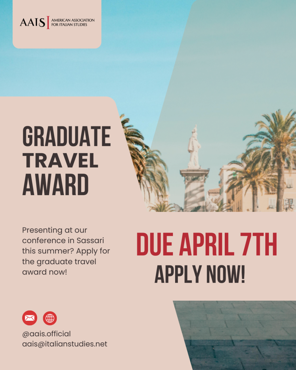 • A brief statement explaining how this award will help you traveling to AAIS Annual Conference in Sassari (see form for further details).